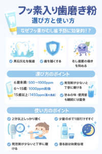 フッ素入り歯磨き粉は、正しく選び・正しく使うことで、虫歯予防に大きな効果を発揮します。