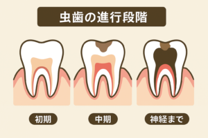 痛みが出るのは、虫歯が象牙質や神経(歯髄)に達してからなのです。